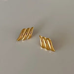 Crafted in a radiant golden finish, the fluid wing design embraces your ears with sculptural brilliance. The polished curves shimmer with every movement, casting a warm, luminous glow that embodies ethereal charm and undeniable confidence.