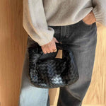 An elegant satchel silhouette with woven lattice detailing, this timeless bag is crafted from soft, vegan leather and is the perfect everyday bag.