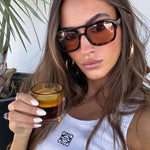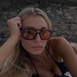 Our Zahra sunglasses are vintage-inspired aviator glasses with cinnamon-coloured lenses. This model not only flatters the face, but the colour combination makes it the perfect companion for any outfit!
